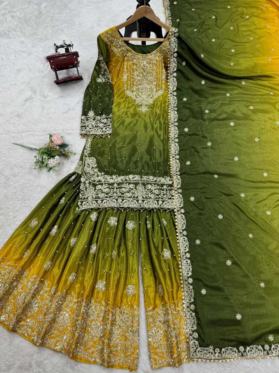 Name : KD 1498 Havy Chinon Mustard Designer Suit