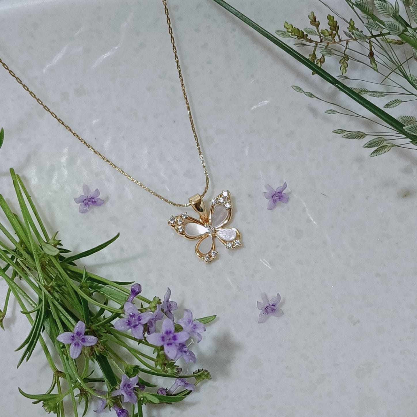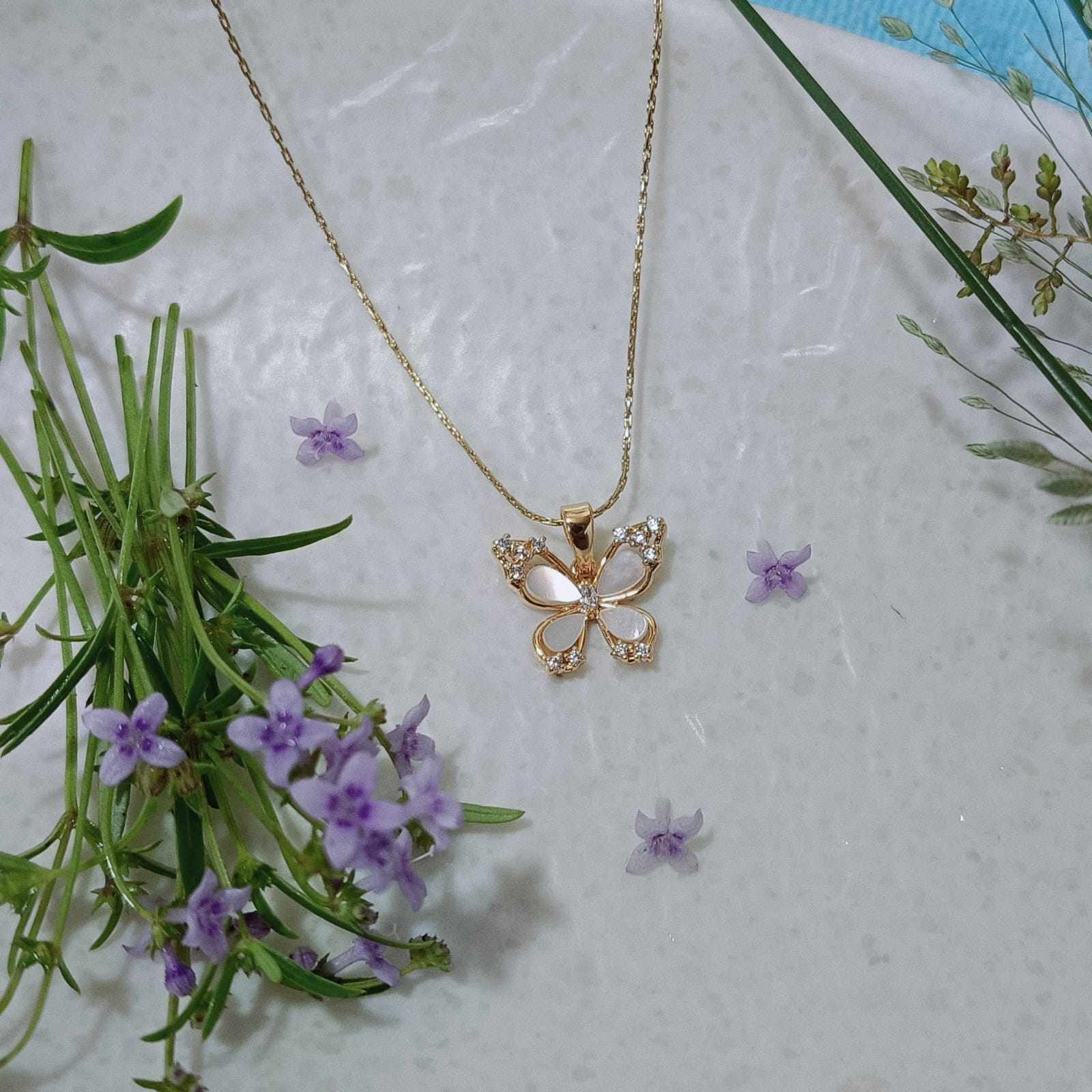 Discover timeless beauty with this Butterfly shaped pendant necklace, crafted from durable stainless steel and finished in a radiant gold tone. Inspired by the elegance of the ocean, the pendant features a charming open shell design that reveals a luminous simulated butterfly nestled inside — a symbol of purity and hidden treasures.