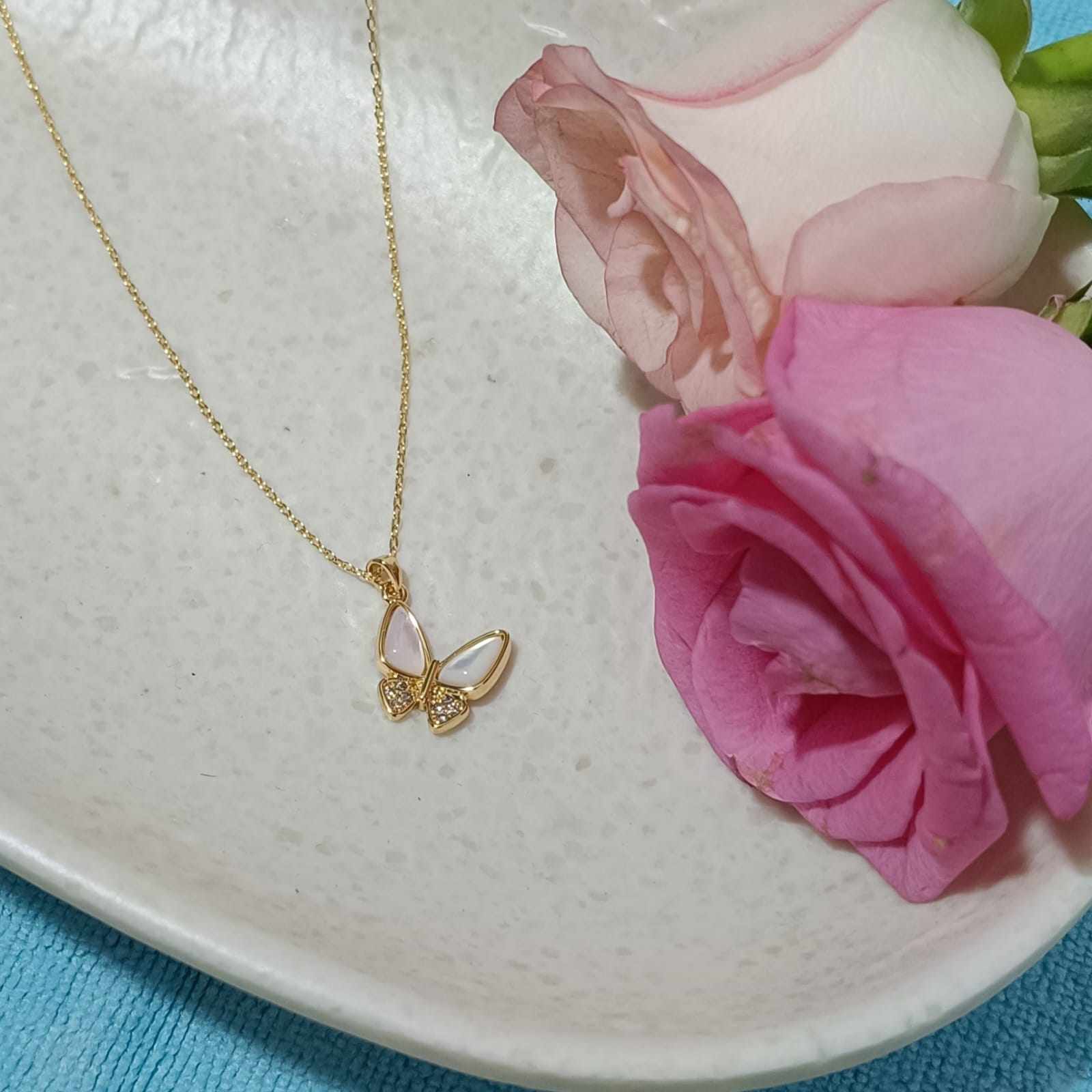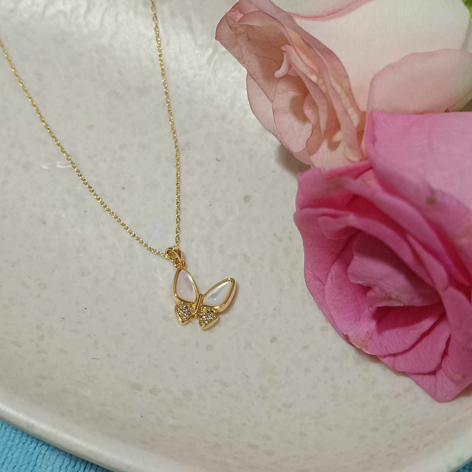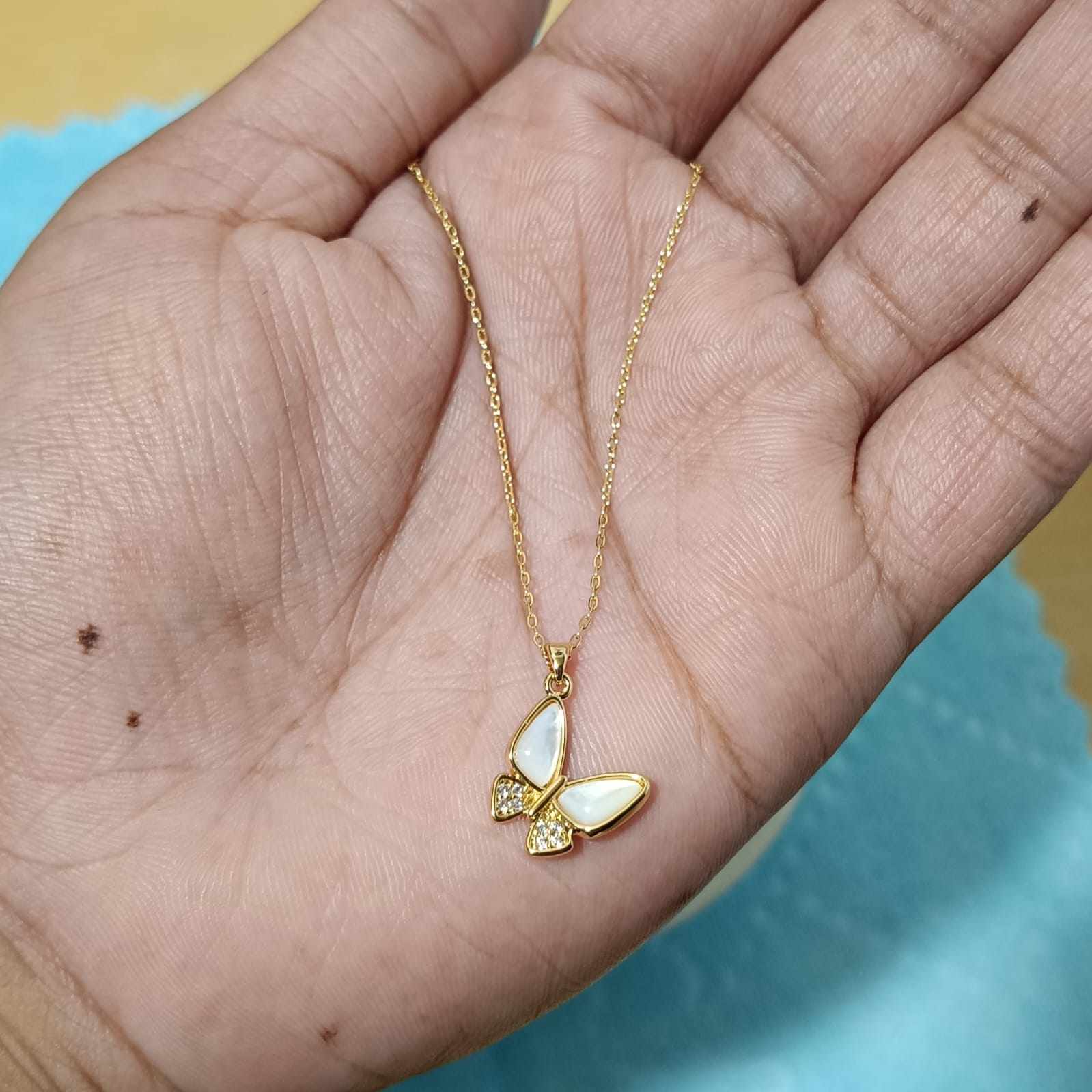 Discover timeless beauty with this Butterfly shaped pendant necklace, crafted from durable stainless steel and finished in a radiant gold tone. Inspired by the elegance of the ocean, the pendant features a charming open shell design that reveals a luminous simulated butterfly nestled inside — a symbol of purity and hidden treasures.