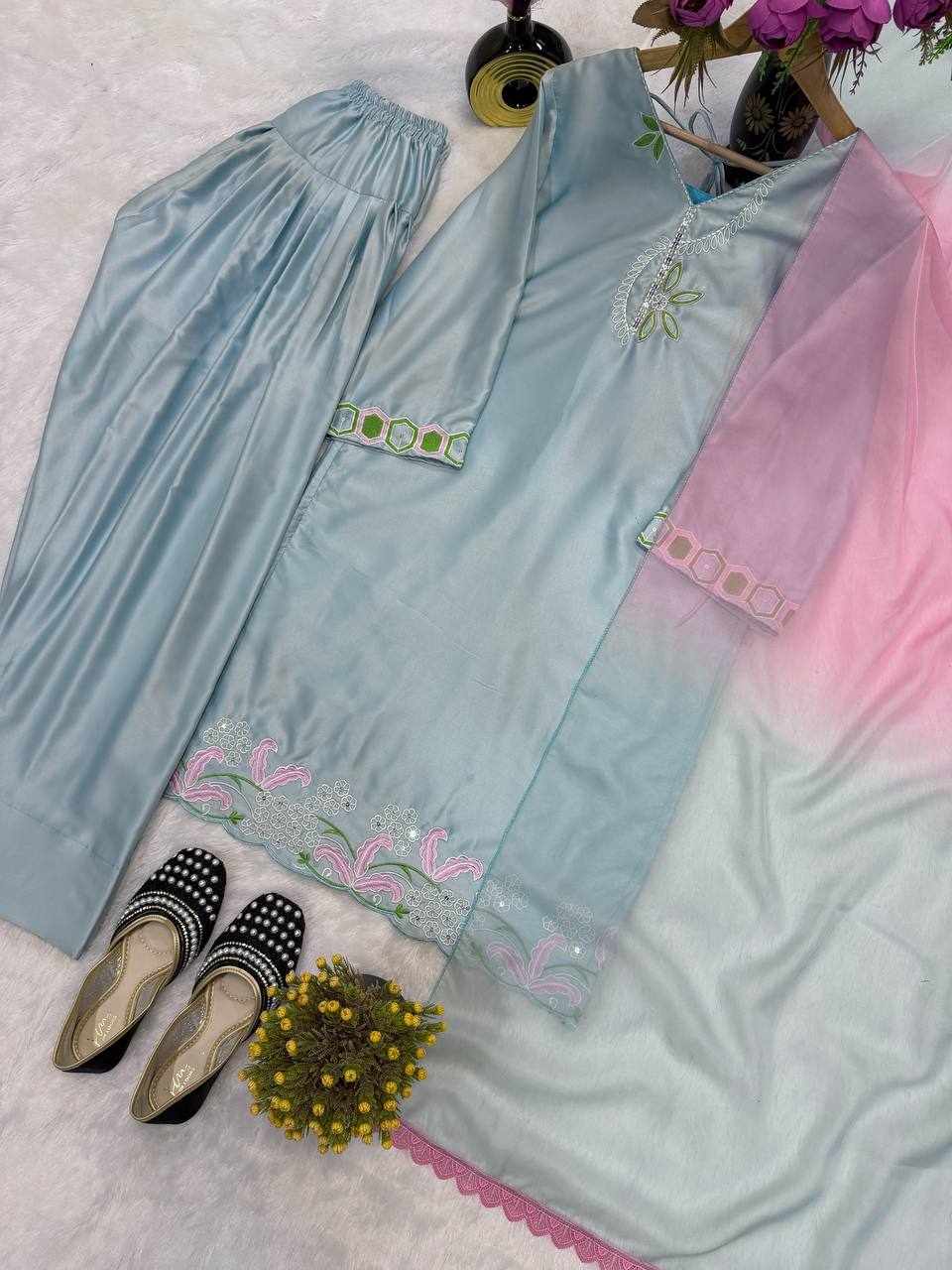 Fabric : Heavy Malay Satin Silk with Embroidery Sequence Work and Fancy Latkan Sleeves