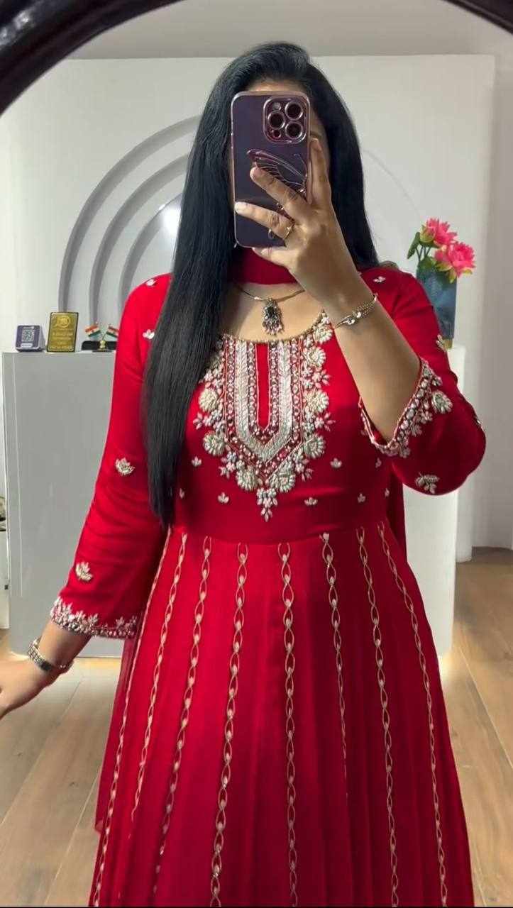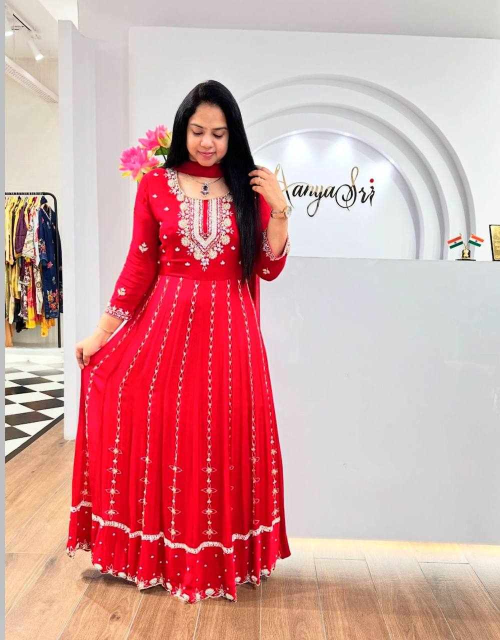 Pc 435 Red Chinon Embroidery Sequence Gown