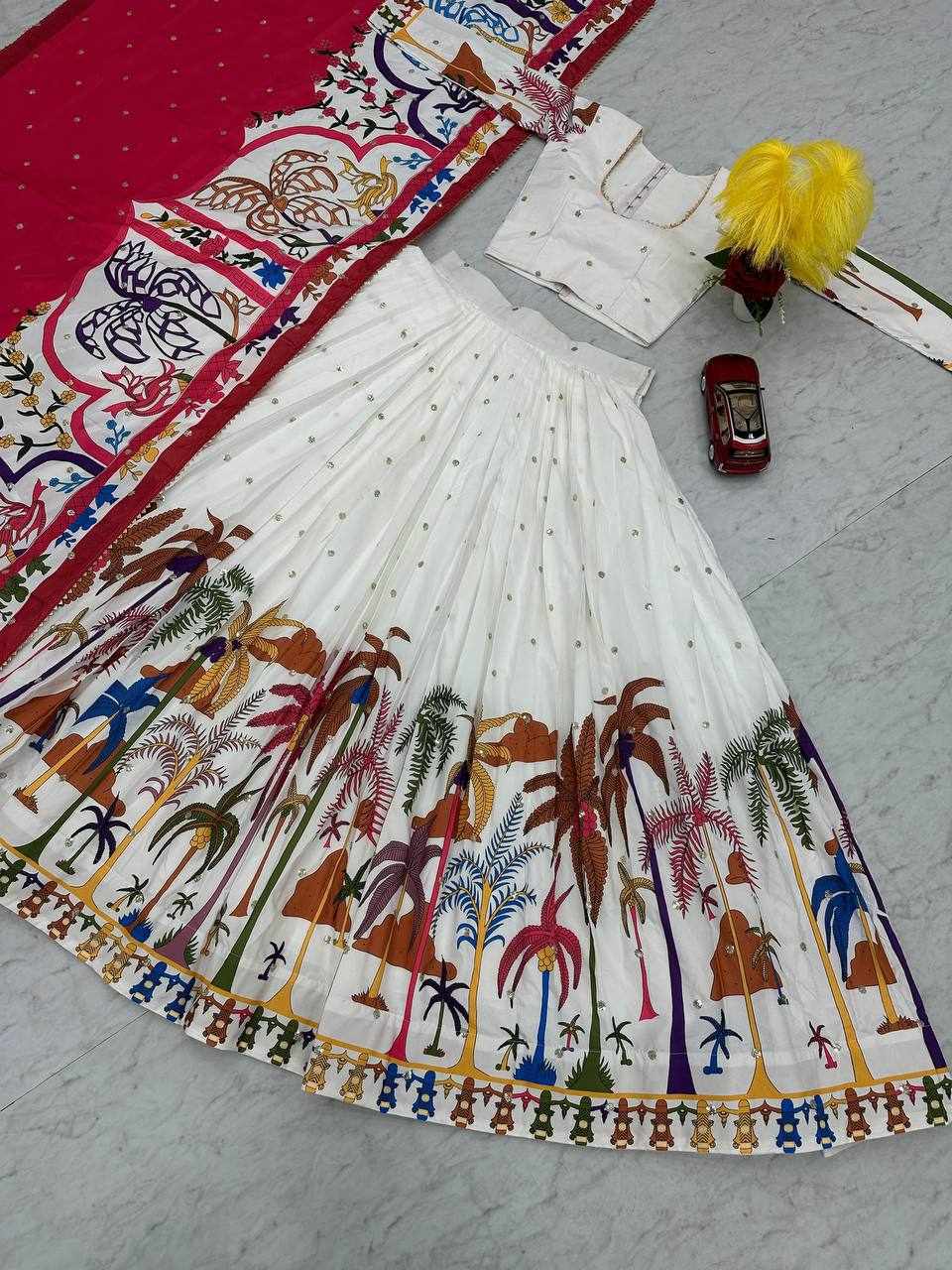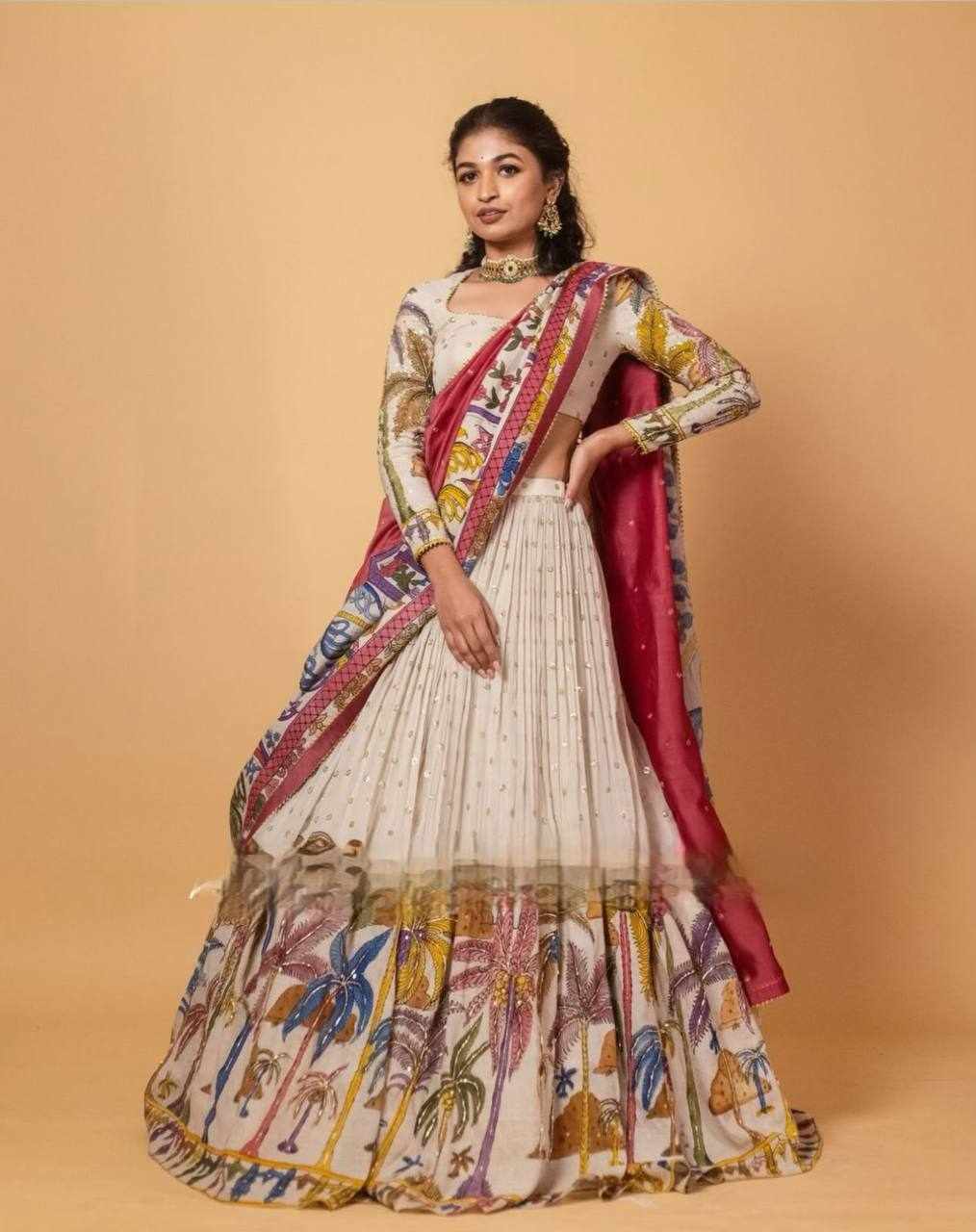 PC 456 White Chent Crep Kalamkari Print Lehenga