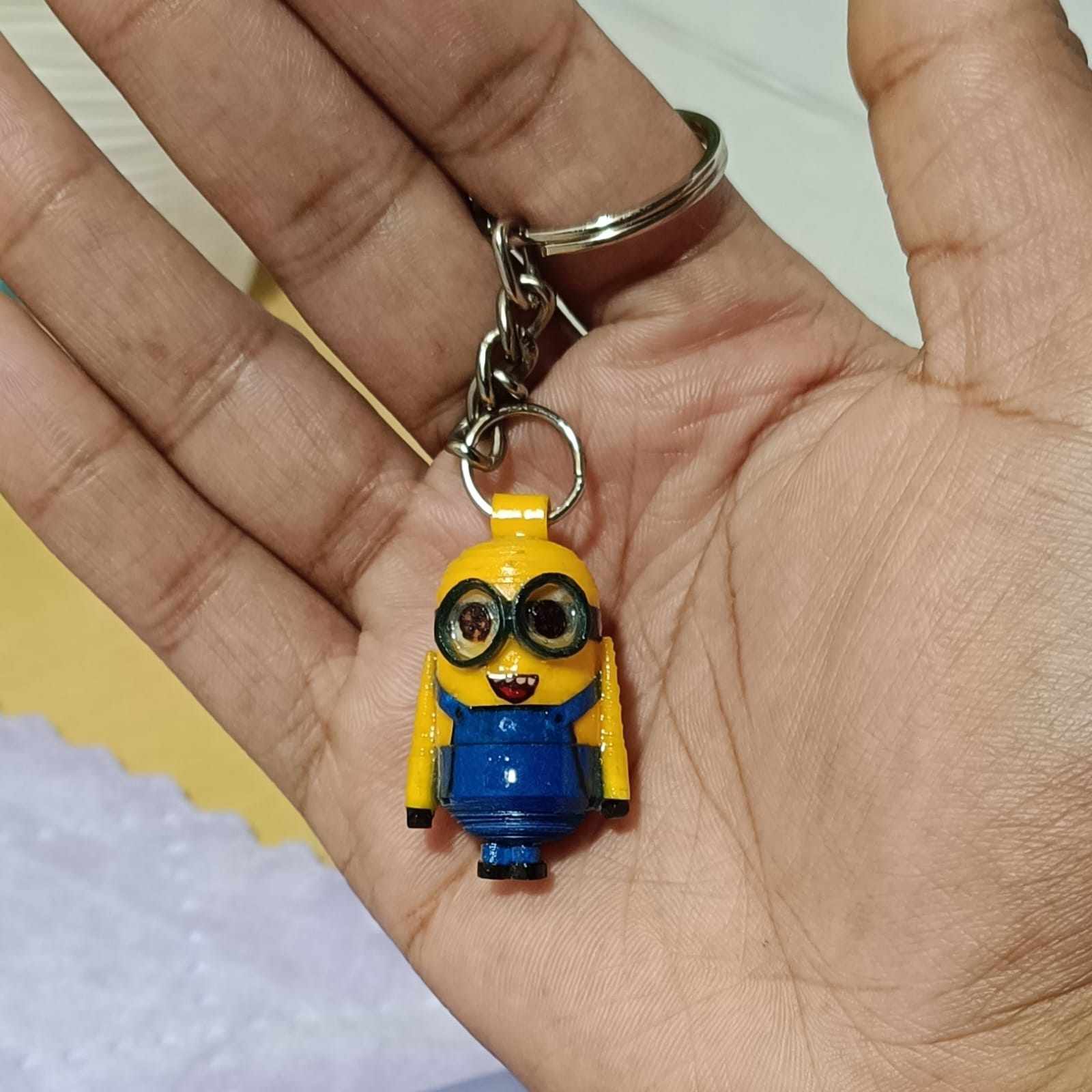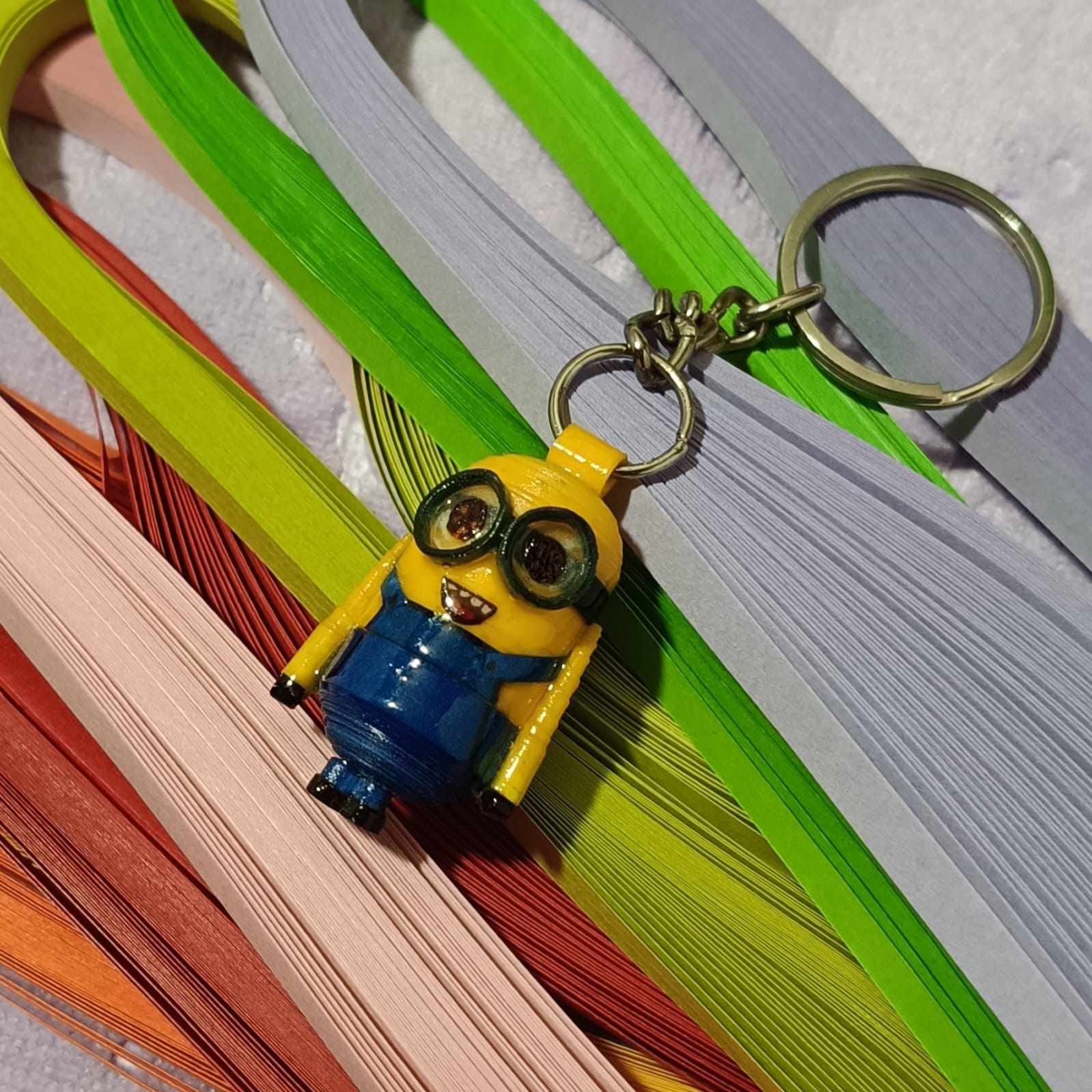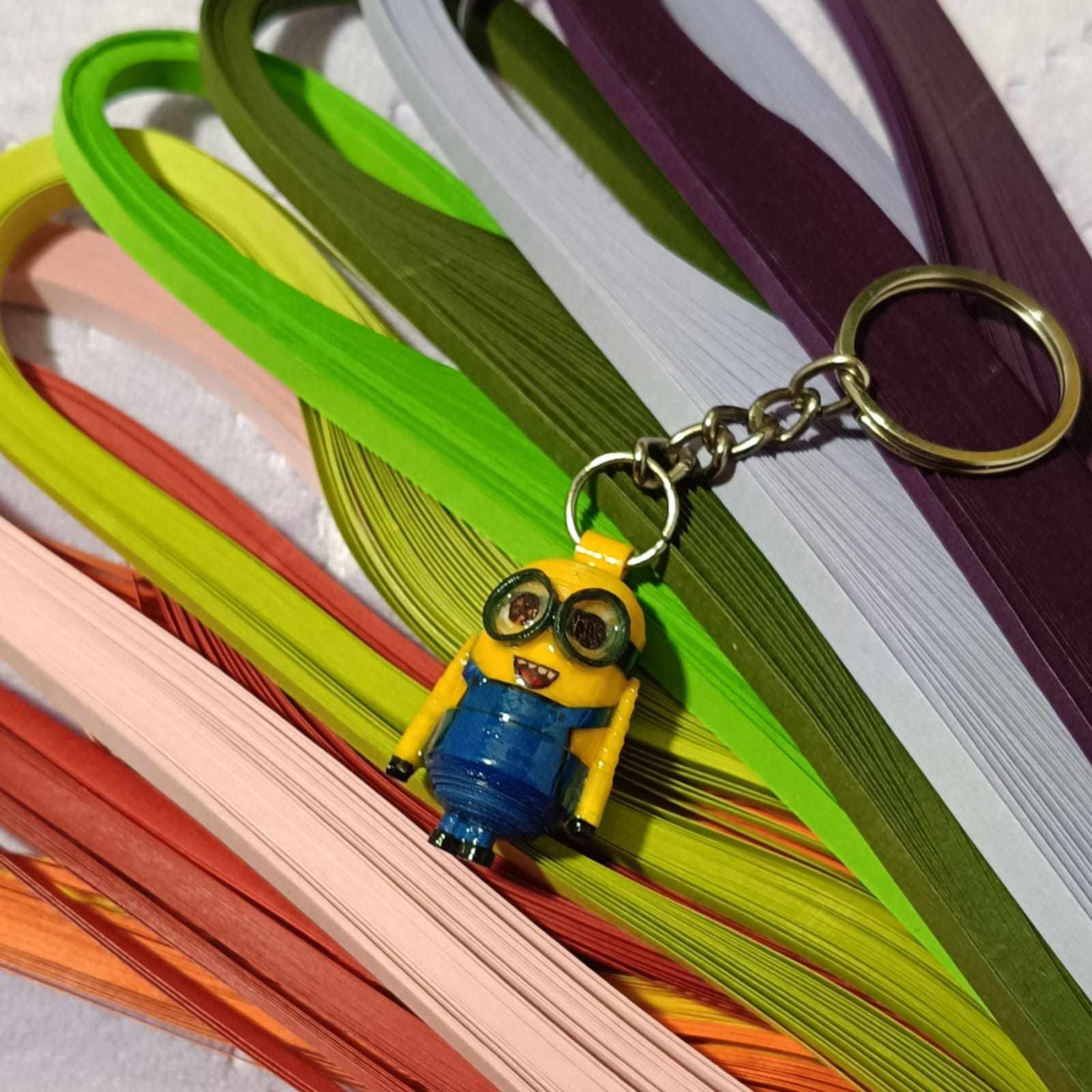 Two-Eyed Minion Paper Quilling Keychain – Waterproof & Handmade Fun!