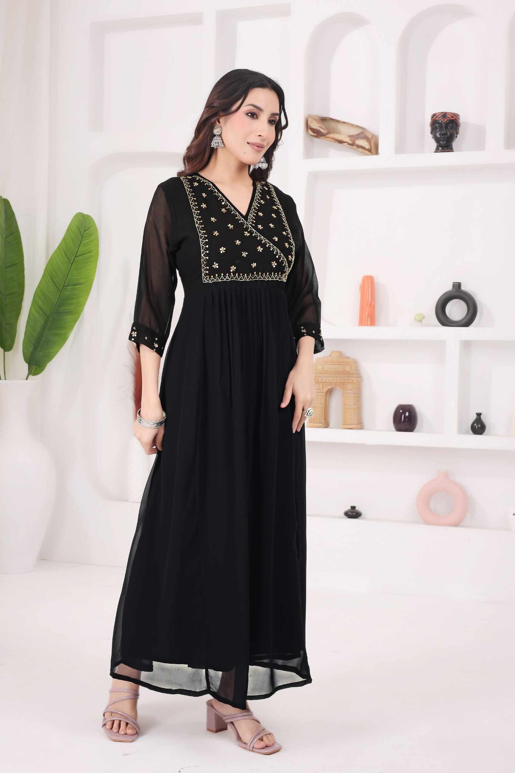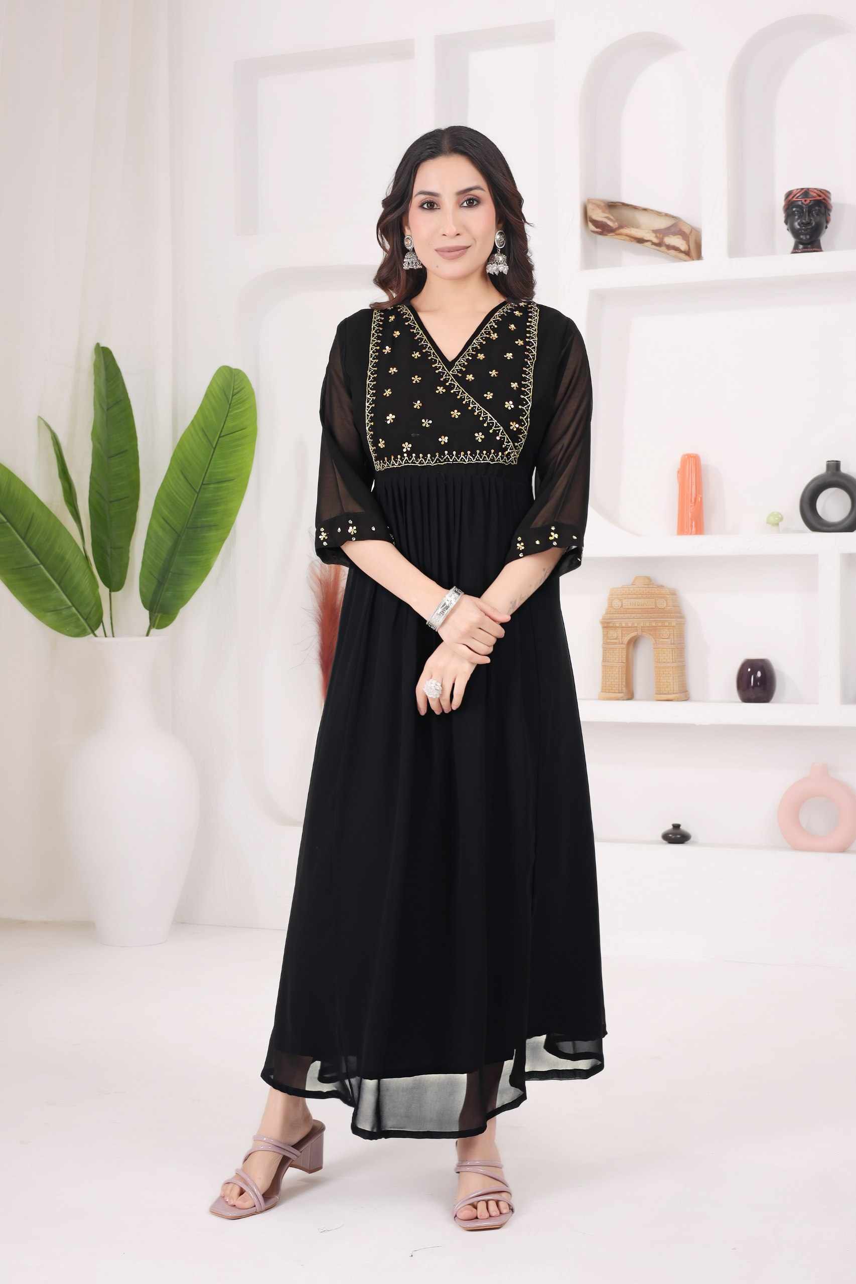 WM12 BLACK BLOOMING GEORGETTE BEAUTIFUL HANDWORK KURTI